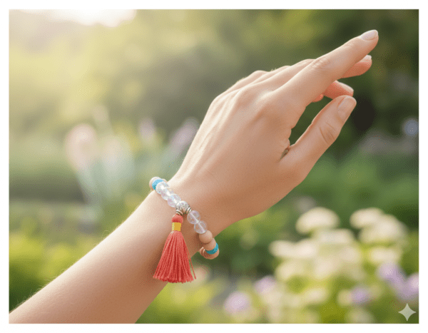 चंदन और स्फटिक का ब्रेसलेट आध्यात्मिक और स्वास्थ्य दोनों दृष्टि से अत्यंत लाभदायक होता है। चंदन मन को शांत रखता है, तनाव दूर करता है और एकाग्रता बढ़ाता है। इसकी सुगंध सकारात्मक ऊर्जा उत्पन्न करती है और ध्यान में सहायक होती है। स्फटिक ठंडक प्रदान करता है, शरीर का तापमान संतुलित रखता है और नकारात्मक ऊर्जा से रक्षा करता है। इन दोनों का संयोजन मानसिक स्थिरता, आत्मिक शांति और सौभाग्य को आकर्षित करता है। इसे पहनने से मन शांत रहता है, आभा (Aura) शुद्ध होती है और जीवन में सकारात्मकता एवं संतुलन बना रहता है।