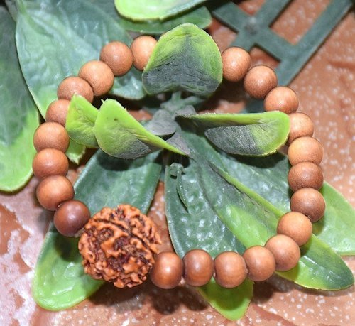 Sandalwood and Rudraksha bracelets offer spiritual, emotional, and physical benefits. Sandalwood beads calm the mind, reduce anxiety, and promote mental clarity through their soothing fragrance. They help create a peaceful aura and enhance focus during meditation. Rudraksha beads, sacred in Hindu tradition, bring spiritual protection, balance blood pressure, and increase inner strength. Together, they promote harmony between body and soul, attract positive energy, and remove negative thoughts. Wearing a Sandal and Rudraksha bracelet daily enhances concentration, peace, and confidence while keeping the wearer spiritually grounded and emotionally stable. It symbolizes purity, devotion, and divine connection.