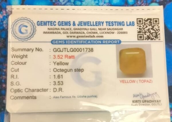 This item: Certified Odisha Yellow Sapphire (Pukhraj) Gemstone(ओडिशा पुखराज), Weight- 3.52 Ratti