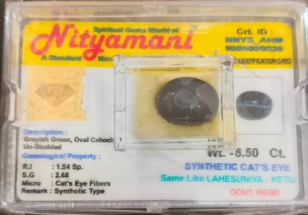 Be the first to review “Certified Synthetic Cat’s Eye Same Like As Lahsuniya, Weight 8.50 carat” Cancel reply