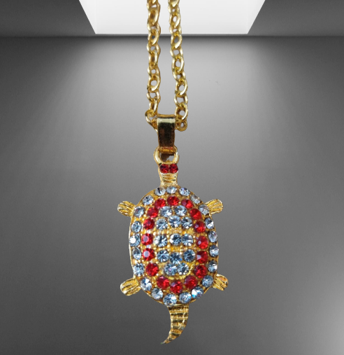 American Diamond Metal Golden Meru Tortoise Pendant With Chain | Size 50×20 mm