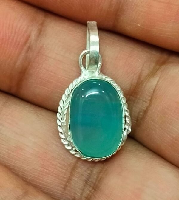 Silver Polished Brass Hakik Stone Locket 28(हकीक स्टोन लॉकेट)
