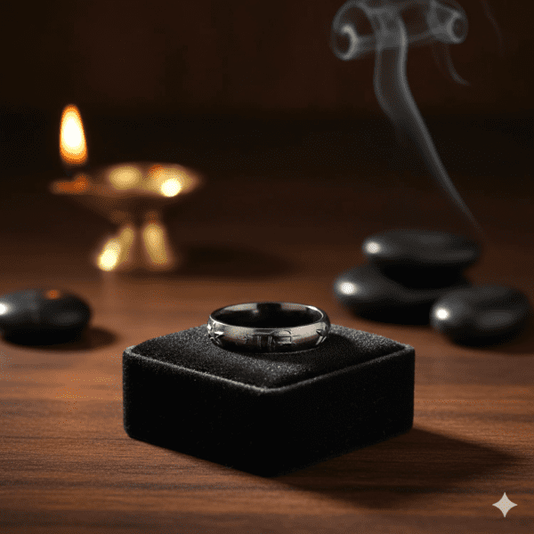 An iron ring, especially worn on the middle finger of the right hand, is widely recommended in Vedic astrology for the pacification of Shani Dosh (Saturn afflictions). Iron is considered the metal of Lord Shani (Saturn), and wearing a ring made from pure iron traditional tools—is believed to absorb and neutralize Saturn’s negative effects. It helps reduce obstacles, delays, failures, and misfortunes caused by malefic Saturn. This ring brings stability, discipline, and patience into the wearer’s life, qualities that are favored by Saturn. It is also thought to protect against accidents, financial loss, and legal troubles. The iron ring strengthens mental focus, promotes a sense of responsibility, and supports emotional balance during Saturn’s challenging transits like Sade Sati or Dhaiya. Wearing it after proper purification and with faith acts as a spiritual remedy, aligning the wearer with Saturn’s karmic lessons and ultimately bringing growth and maturity.