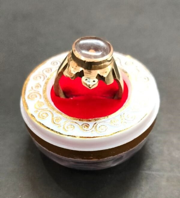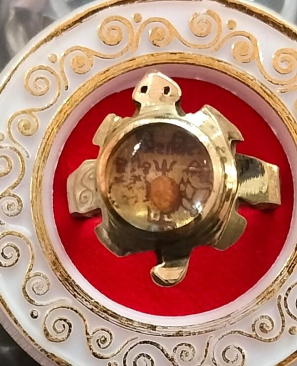 The Ashtadhatu Shiv Shakti Meru Ring with Rudraksha is a spiritually powerful ornament that symbolizes the union of divine masculine (Shiv) and feminine (Shakti) energies. Crafted from Ashtadhatu (a blend of eight sacred metals), it enhances physical strength, spiritual balance, and mental clarity. The Meru form of the Shri Yantra on the ring radiates high-frequency vibrations that attract wealth, success, and positivity. Rudraksha beads, associated with Lord Shiva, bring peace of mind, reduce anxiety, and act as a protective shield against negativity and evil forces. This combination balances the chakras, boosts inner confidence, and aids in meditation and spiritual growth. It also helps in removing obstacles and improving focus, making it ideal for those seeking success in business, relationships, and personal life. Regular wearing of this ring with devotion and faith amplifies its energy, making it a powerful tool for transformation, prosperity, and divine connection in everyday life.