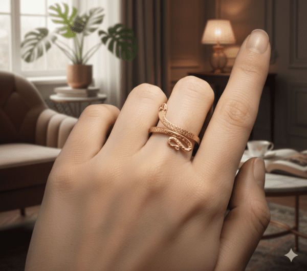 कॉपर नाग (सर्प) अंगूठी आध्यात्मिक, ज्योतिषीय और स्वास्थ्य संबंधी दृष्टिकोण से अनेक लाभ प्रदान करती है। काल सर्प दोष निवारण के लिए बहुत लाभदायक है| वैदिक परंपरा में सर्प को दिव्य ऊर्जा, परिवर्तन और सुरक्षा का प्रतीक माना जाता है। जब यह अंगूठी तांबे (कॉपर) से बनी होती है, तो इसकी शक्ति और भी बढ़ जाती है, क्योंकि तांबा प्राकृतिक रूप से उपचारक और ऊर्जा का संवाहक होता है। कॉपर नाग अंगूठी पहनने से शरीर की ऊर्जा का प्रवाह संतुलित होता है, सूजन कम होती है और जोड़ों के दर्द में राहत मिलती है। यह अंगूठी भगवान शिव और राहु से जुड़ी मानी जाती है और नकारात्मक ऊर्जा, काले जादू और गुप्त शत्रुओं से रक्षा करती है। यह भय, चिंता और मानसिक भ्रम को दूर करने में मदद करती है। ज्योतिषीय रूप से इसे राहु के अशुभ प्रभाव को शांत करने और जीवन में आ रही बाधाओं को कम करने के लिए पहना जाता है। नाग की आकृति कुंडलिनी ऊर्जा को जाग्रत करती है और आध्यात्मिक उत्थान में सहायक होती है। यह अंगूठी रक्त संचार सुधारती है, शरीर को डिटॉक्स करती है और ऑरा को मजबूत व संतुलित बनाए रखती है। कुल मिलाकर, यह शक्ति, स्पष्टता और आंतरिक शांति प्रदान करने वाला एक सुरक्षात्मक तावीज़ है।