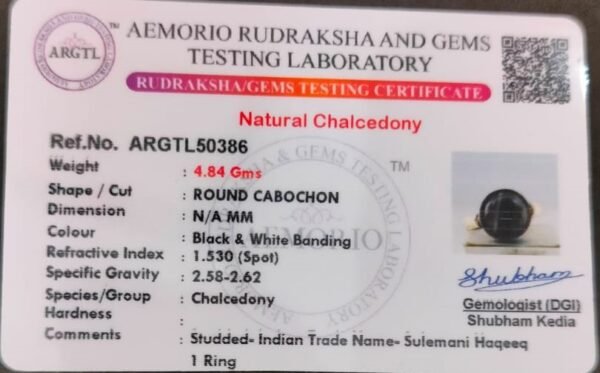 This item: High Quality Certified Sulemani Hakik Stone Ring In Brass With Certificate(सुलेमानी हकीक स्टोन रिंग) | Size- Adjustable | Weight- 4.84 gram