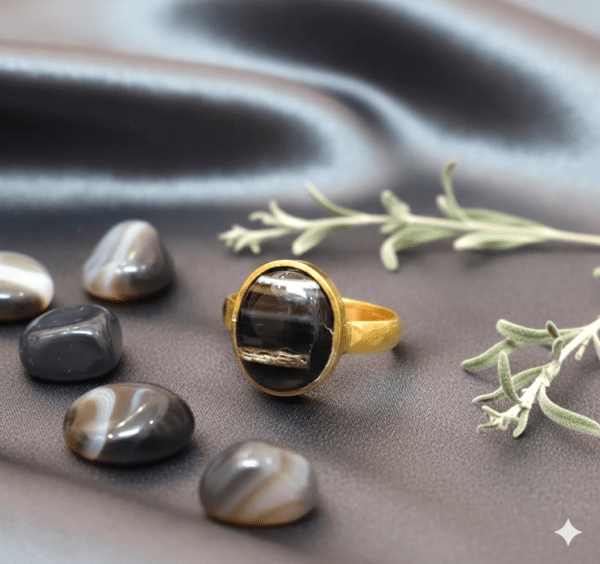 High Quality Certified Sulemani Hakik Stone Ring In Brass With Certificate(सुलेमानी हकीक स्टोन रिंग) | Size- Adjustable | Weight- 4.76 gram