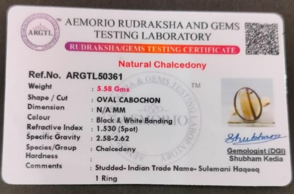 This item: High Quality Certified Sulemani Hakik Stone Ring In Brass With Certificate(सुलेमानी हकीक स्टोन रिंग) | Size- Adjustable | Weight- 5.58 gram