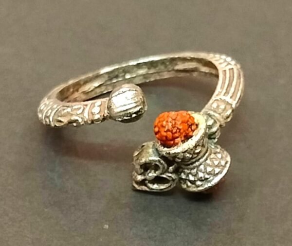 The Metal Trishul Damru Ring symbolizes divine protection, power, and spiritual awakening. The Trishul (trident) represents Lord Shiva’s control over creation, preservation, and destruction, while the Damru (drum) signifies cosmic rhythm and balance. Wearing this ring is believed to ward off negative energies, boost inner strength, and promote mental clarity. It helps in aligning the chakras and enhances focus during meditation. Made of metal, it also grounds energy and brings stability to the wearer. This sacred ring serves as a reminder of spiritual discipline, courage, and divine connection, making it ideal for those seeking protection and spiritual growth.