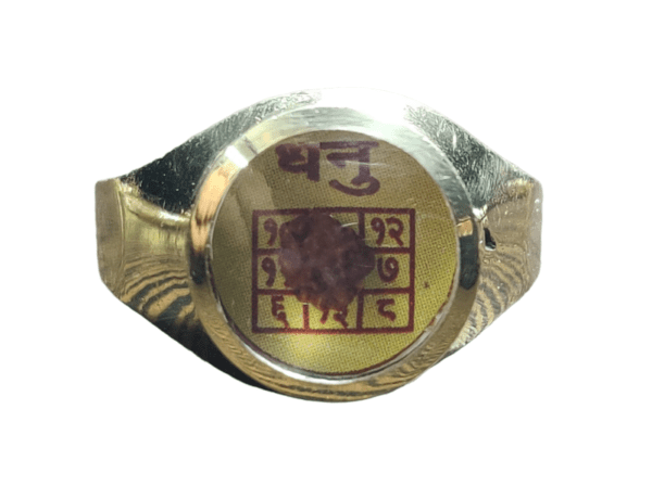 Sagittarius (Dhanu-धनु) Rashi(राशि) Yantra(यंत्र) Asthdhatu(अष्टधातु) Ring(रिंग) with Rudraksh(रुद्राक्ष)