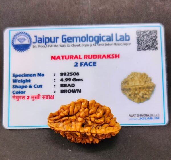 2 Mukhi Certified Rudraksha With Certificate (सर्टिफाइड 2 मुखी रुद्राक्ष ) | Weight 4.99 gm