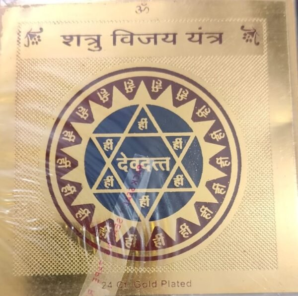 Be the first to review “Gold Plated Copper Shatru Vijay Yantra (शत्रु विजय यन्त्र) | Size 3×3 Inch” Cancel reply