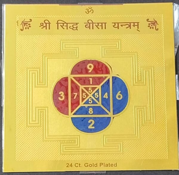 Be the first to review “Gold Plated Copper Shri Sidh Beesa Yantra(श्री सिद्ध बीसा यन्त्र कॉपर), Size 3×3 inch”