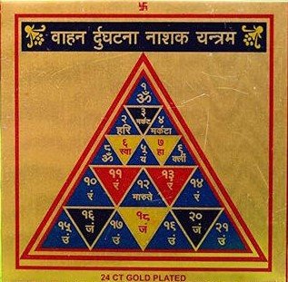 This item: Vahan Durghatna Nashak(वाहन दुर्घटना नाशक) Yantra(यन्त्र)- Gold Plated Copper, Size 3x3 Inch